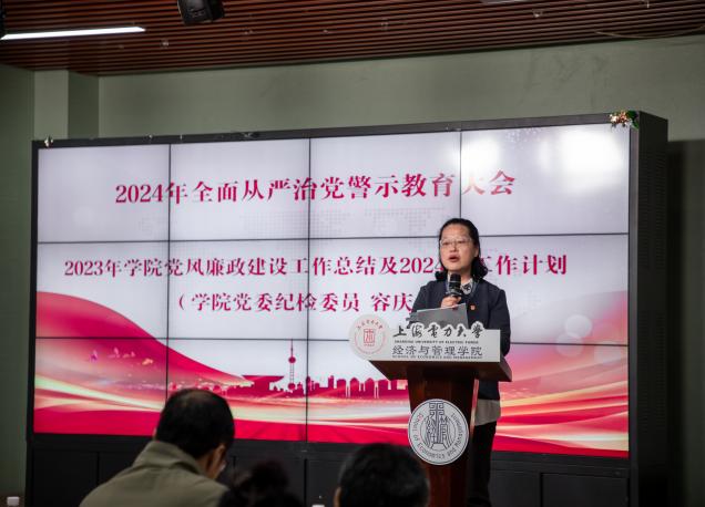接着,学院党委纪检委员容庆作学院2023年党风廉政建设工作总结,并展望了2024年的工作方向和重点。接着,容庆同志通报了高校在落实全面从严治党工作中的典型案例,通过典型案例来加强警示教育,提醒广大党员自觉遵守党的纪律和规定,做到心存敬畏、严守底线。