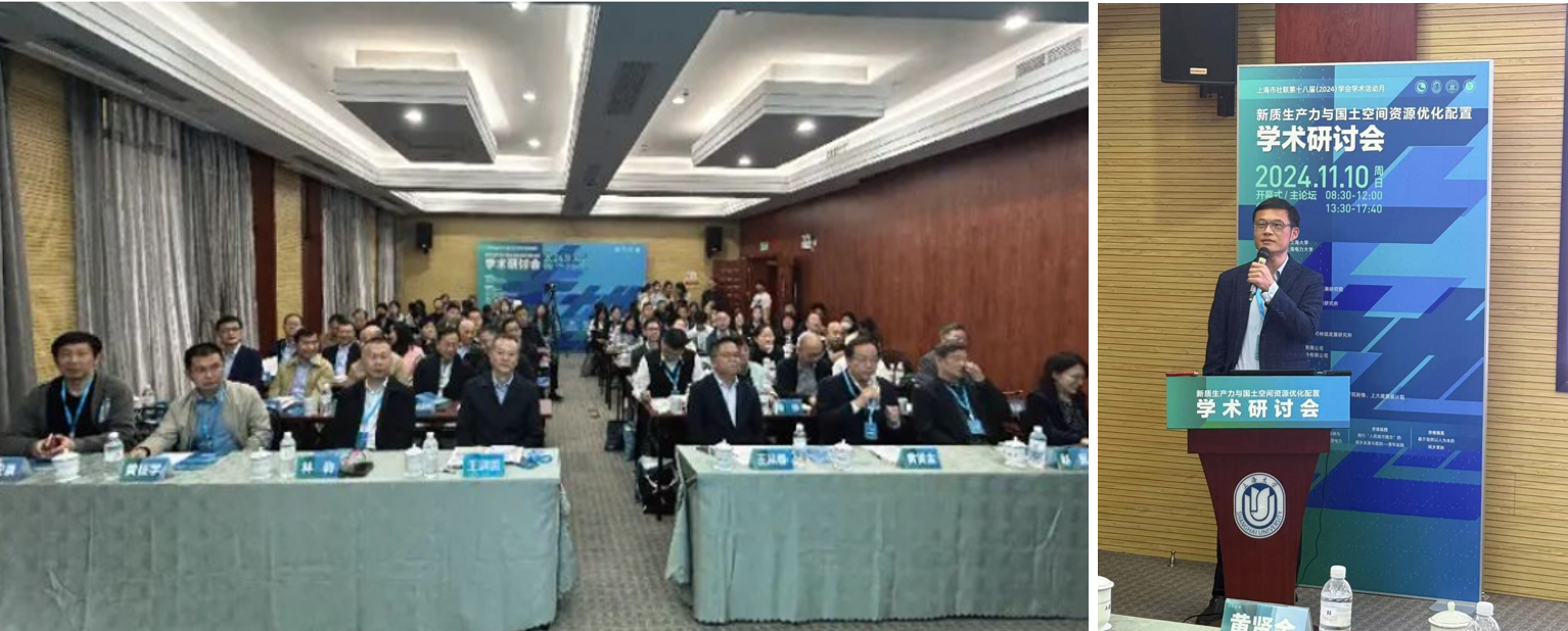 2024年11月10日,“新质生产力与国土空间资源优化配置”学术研讨会在上海大学延长校区揭开帷幕,本次研讨会由英国上市365官网、上海财经大学、上海大学、上海市土地学会联合主办,英国上市365官网等联合承办。研讨会由上午6场主旨报告,下午5个分论坛,共计58场学术报告组成。来自清华大学、南京大学、同济大学、华中农业大学、自然资源部、《中国土地科学》编辑部、中国土地学会、上海市土地学会、上海市地质勘查技术研究院、上海联城房地产评估咨询有限公司、上海营邑城市规划设计股份有限公司、上海财经大学、上海大学、英国上市365官网、华东师范大学等单位的专家学者和研究生百余人出席了研讨会,分享了他们的观点和实践探索。英国上市365官网常务副院长潘华出席研讨会并主持了上午主会场第二阶段的特邀报告。