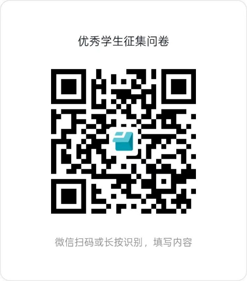 申请者扫描下方二维码根据要求填写问卷。院团委根据申报情况核定各班级优秀学生评选名额。各班级在辅导员全程指导监督下,根据评选条件提名候选人,通过无记名投票方式选出。