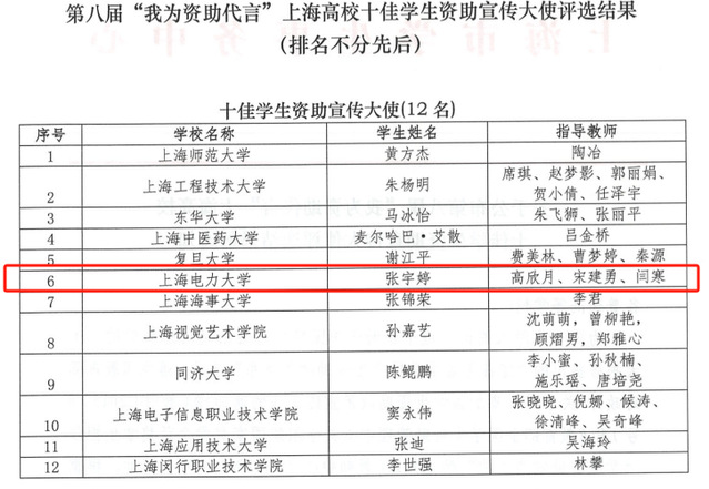 近日,2025年度上海高校十佳学生资助宣传大使评选结果正式揭晓。我院能源服务工程专业张宇婷同学凭借其卓越表现,成功当选,为学校赢得了荣誉。此项荣誉不仅是对张宇婷个人能力的充分肯定,更是我院长期坚持“资助与育人并重”工作理念的生动实践,充分展示了我院学子感恩励志、回馈社会的良好精神风貌。